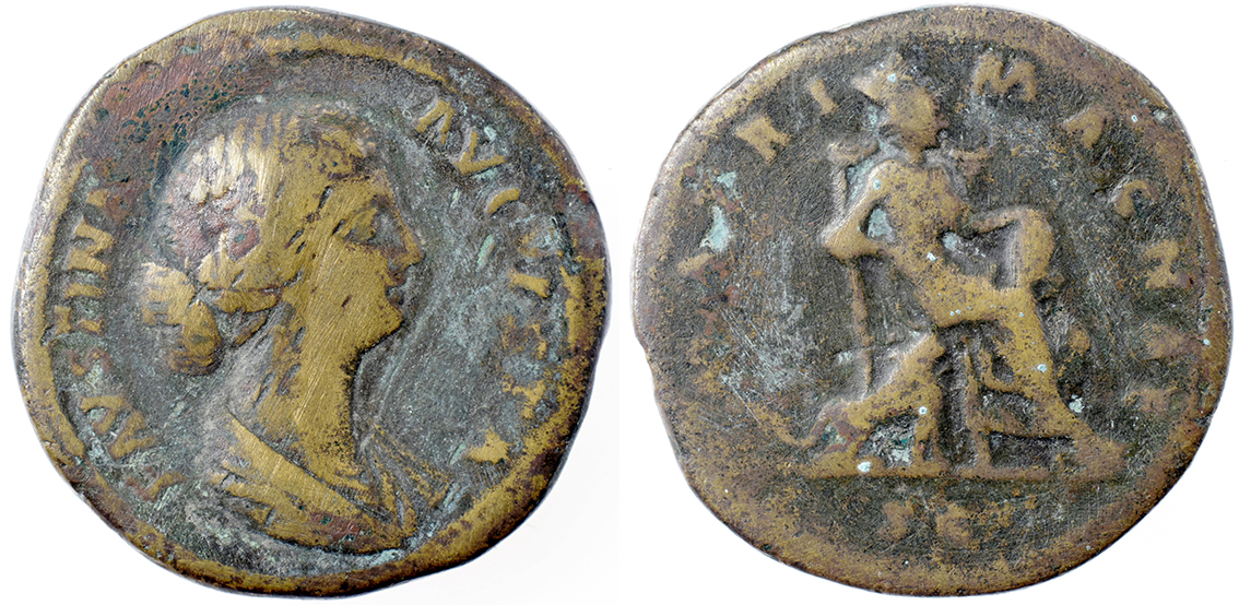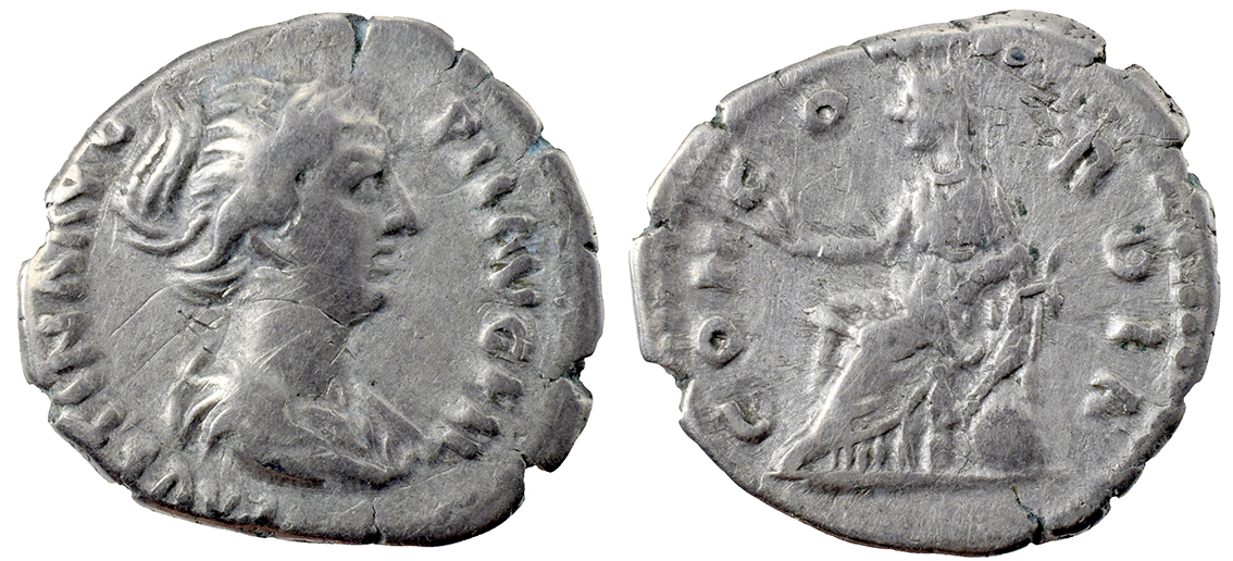 Rom, Faustina Junior. u/Ant. Pius, Denar. 157-161. Concordia siddende