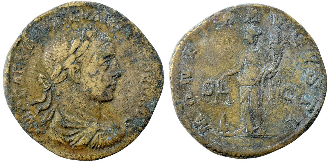 Rom, Severus Alexander. Sesterts. 222-235. Moneta stående.