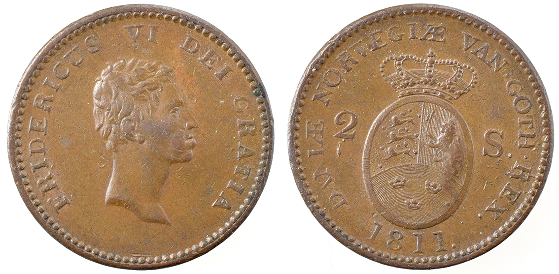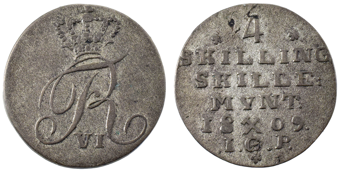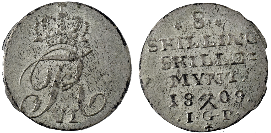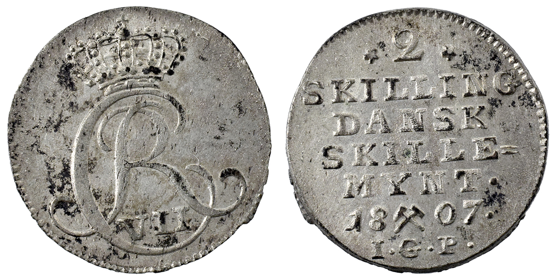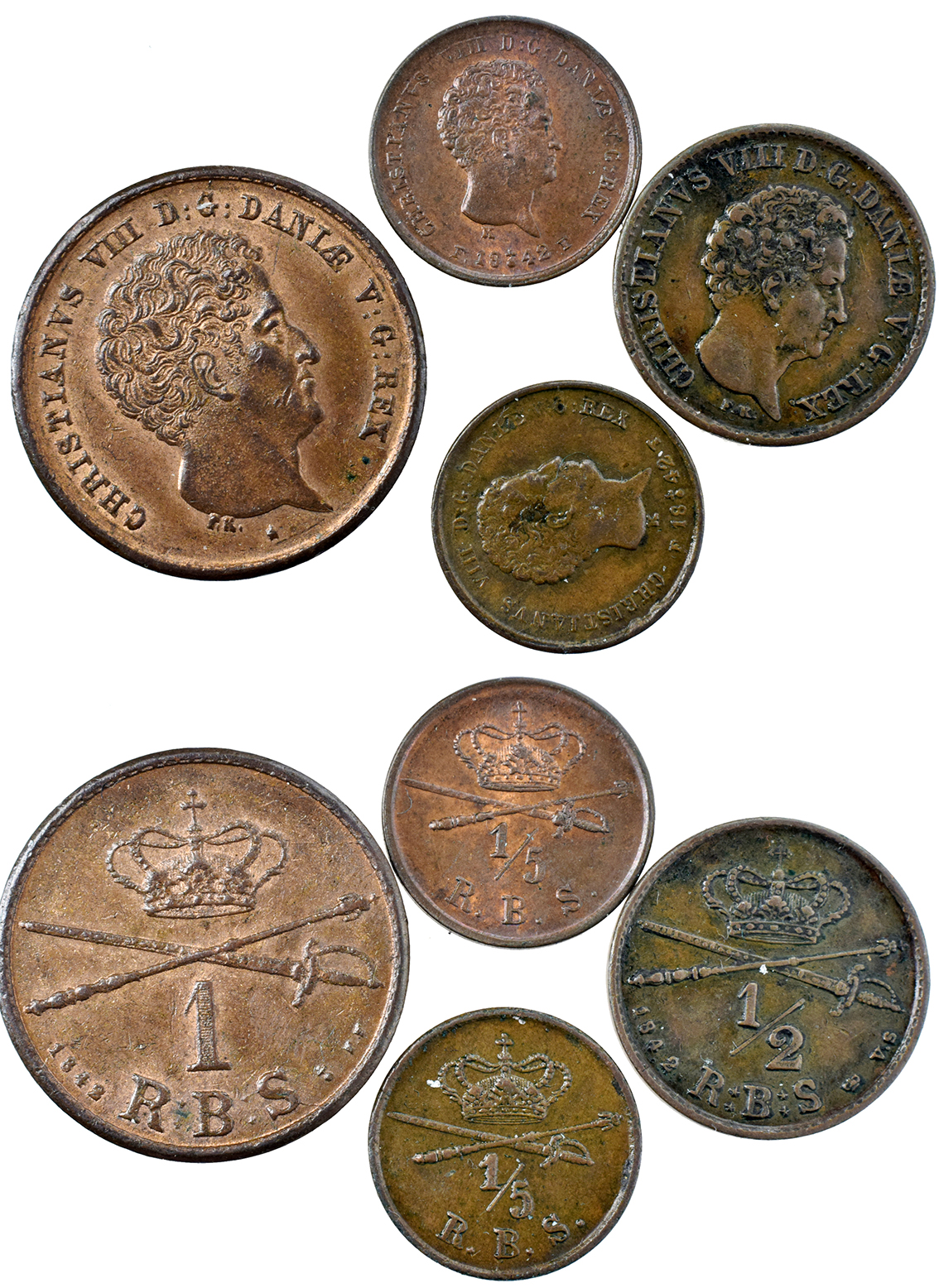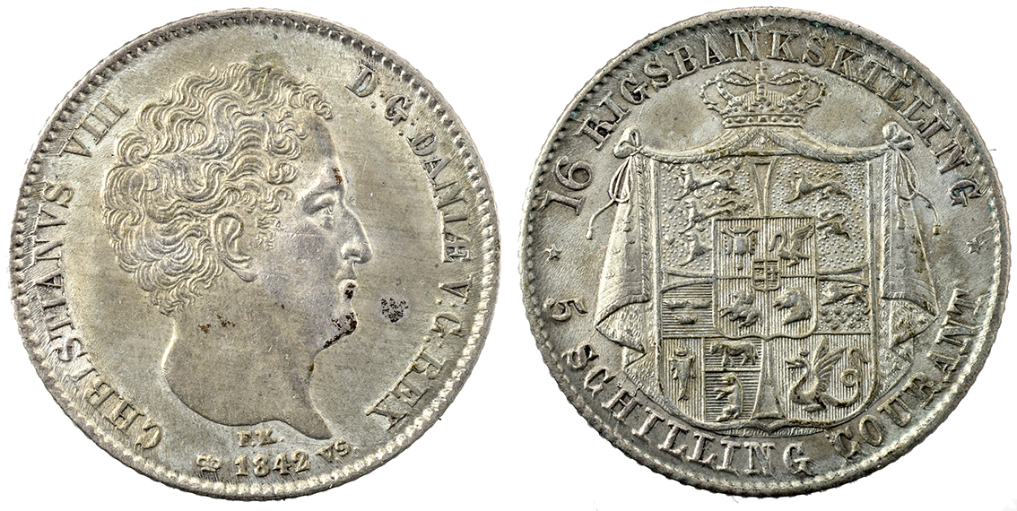 Danmark, Chr.8. & Carol.Math. Afslag Af Dobbeltportræt u.år let tæret