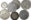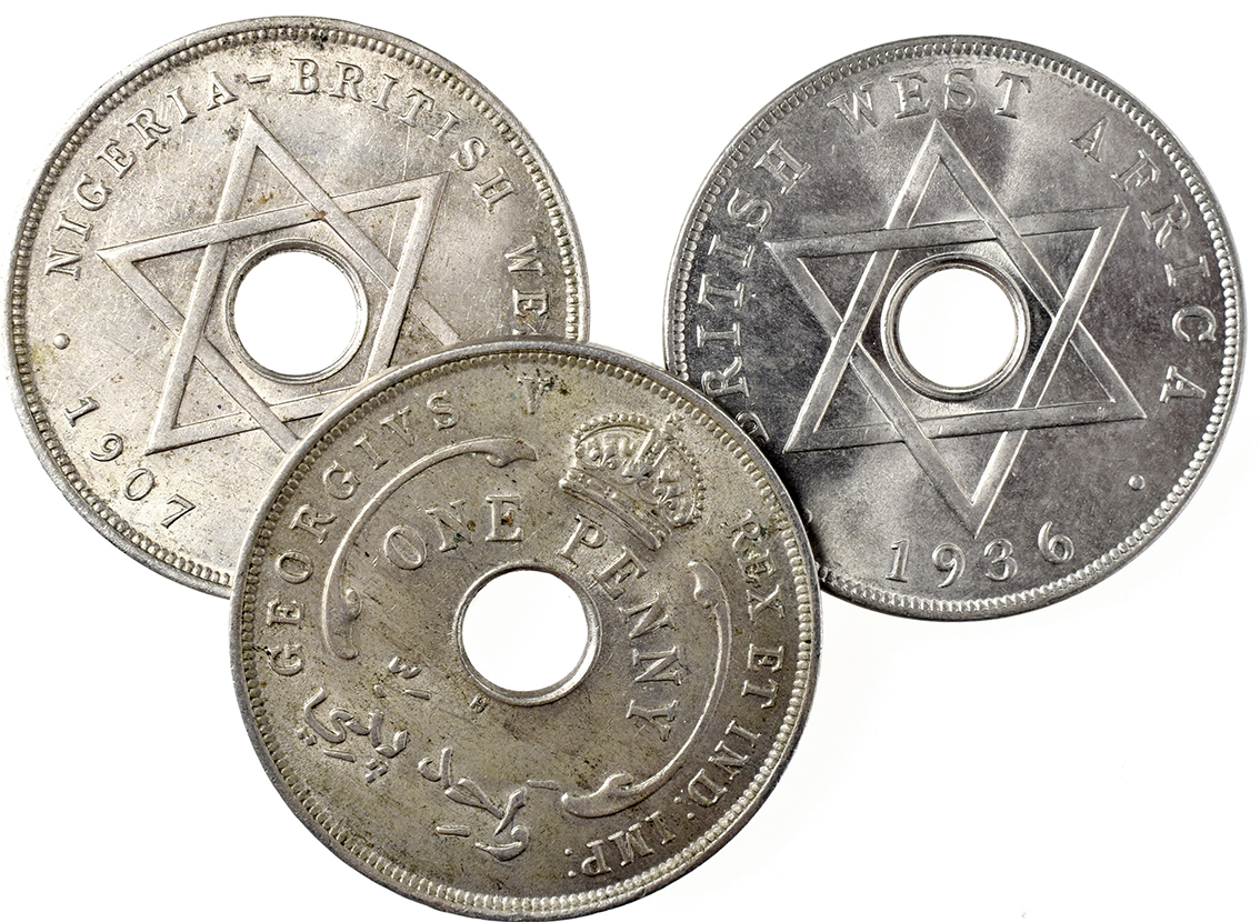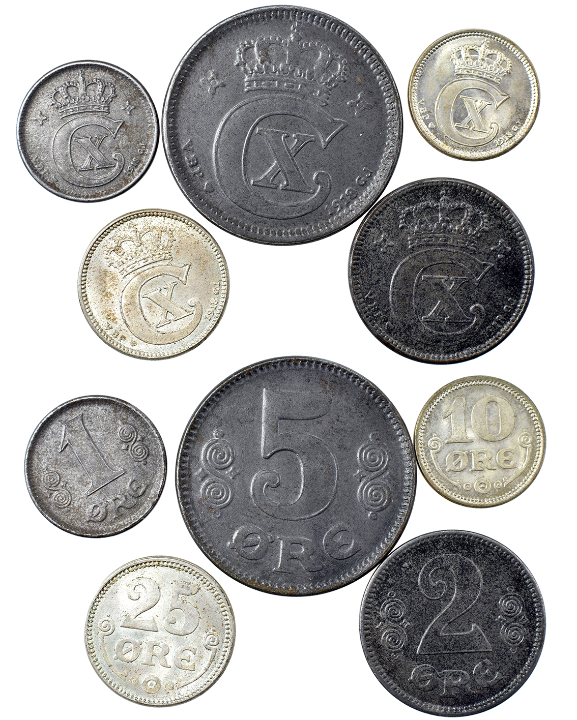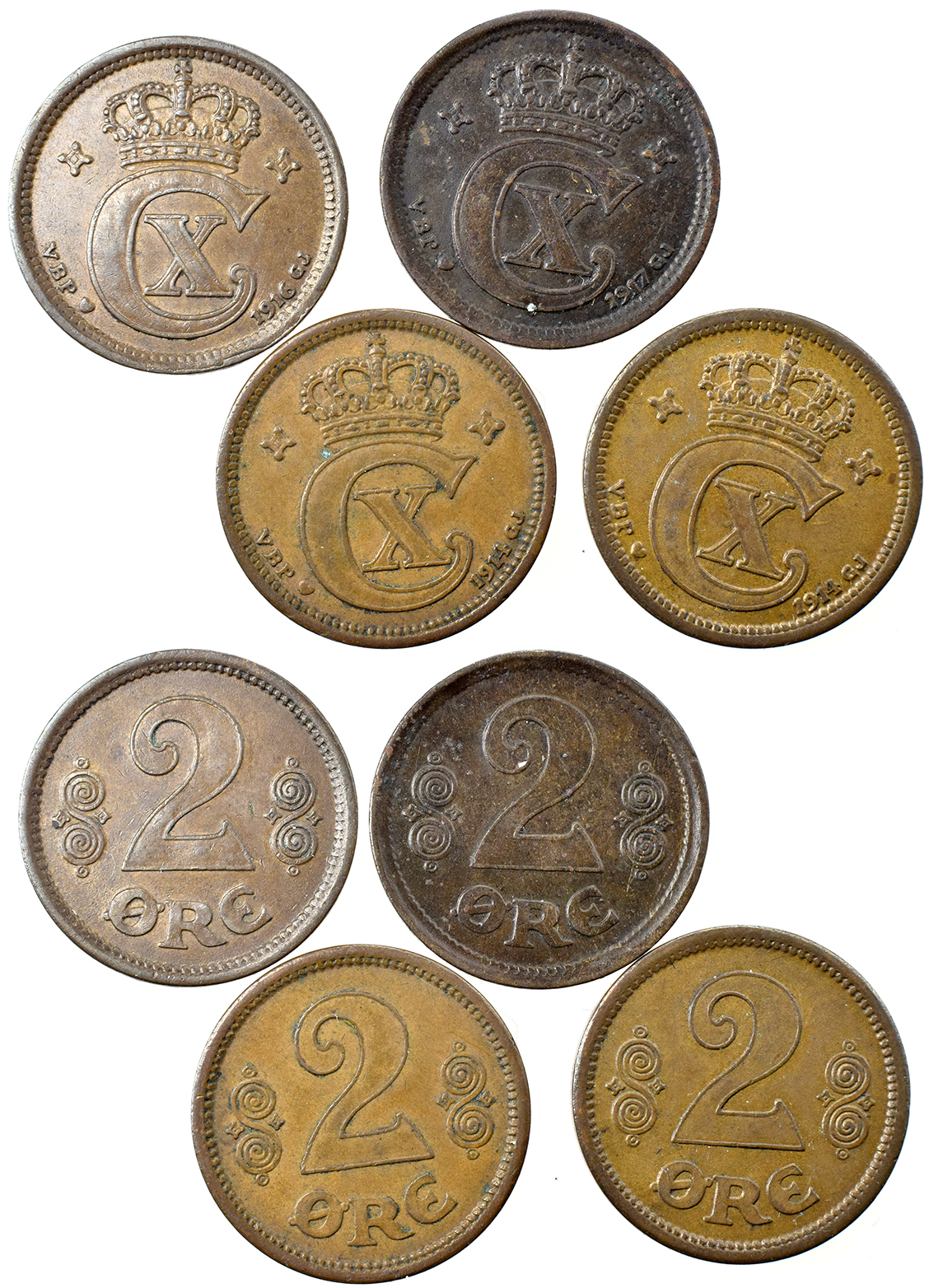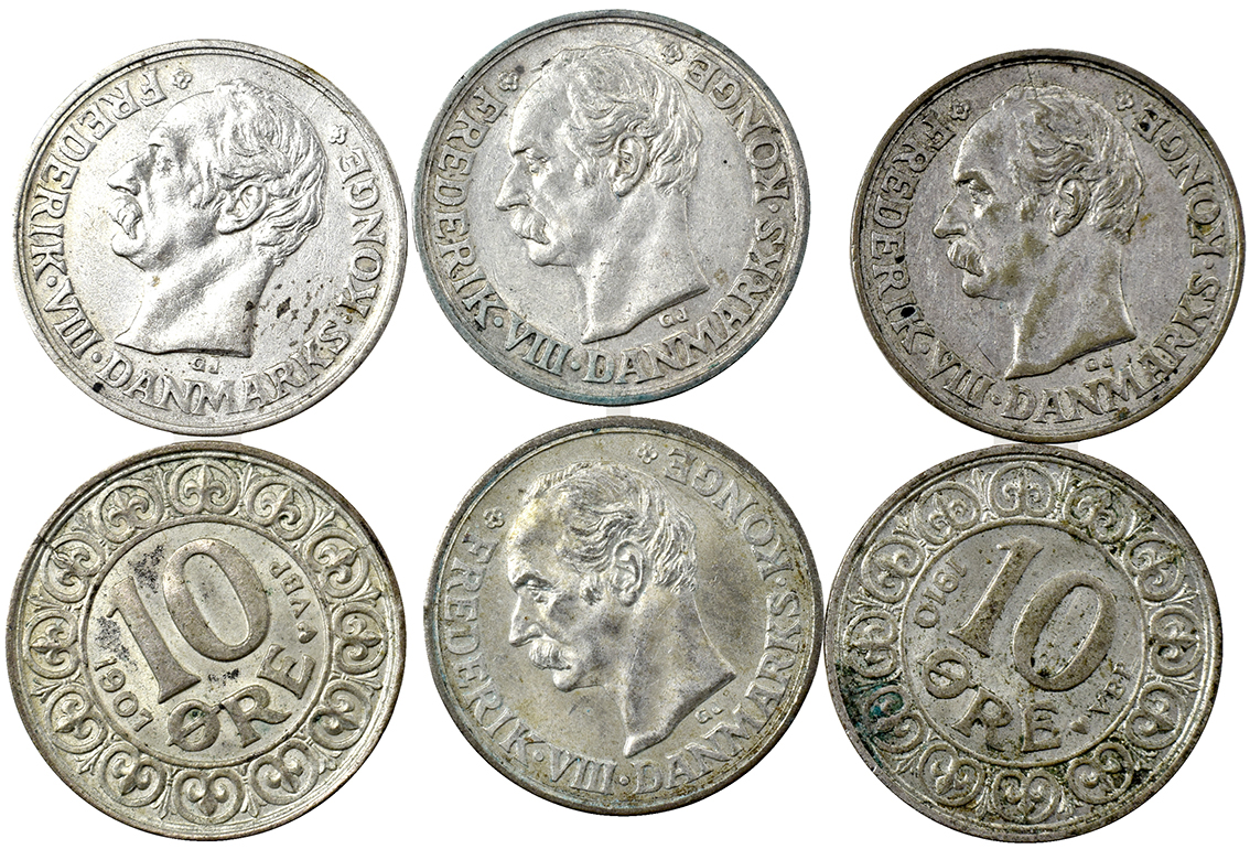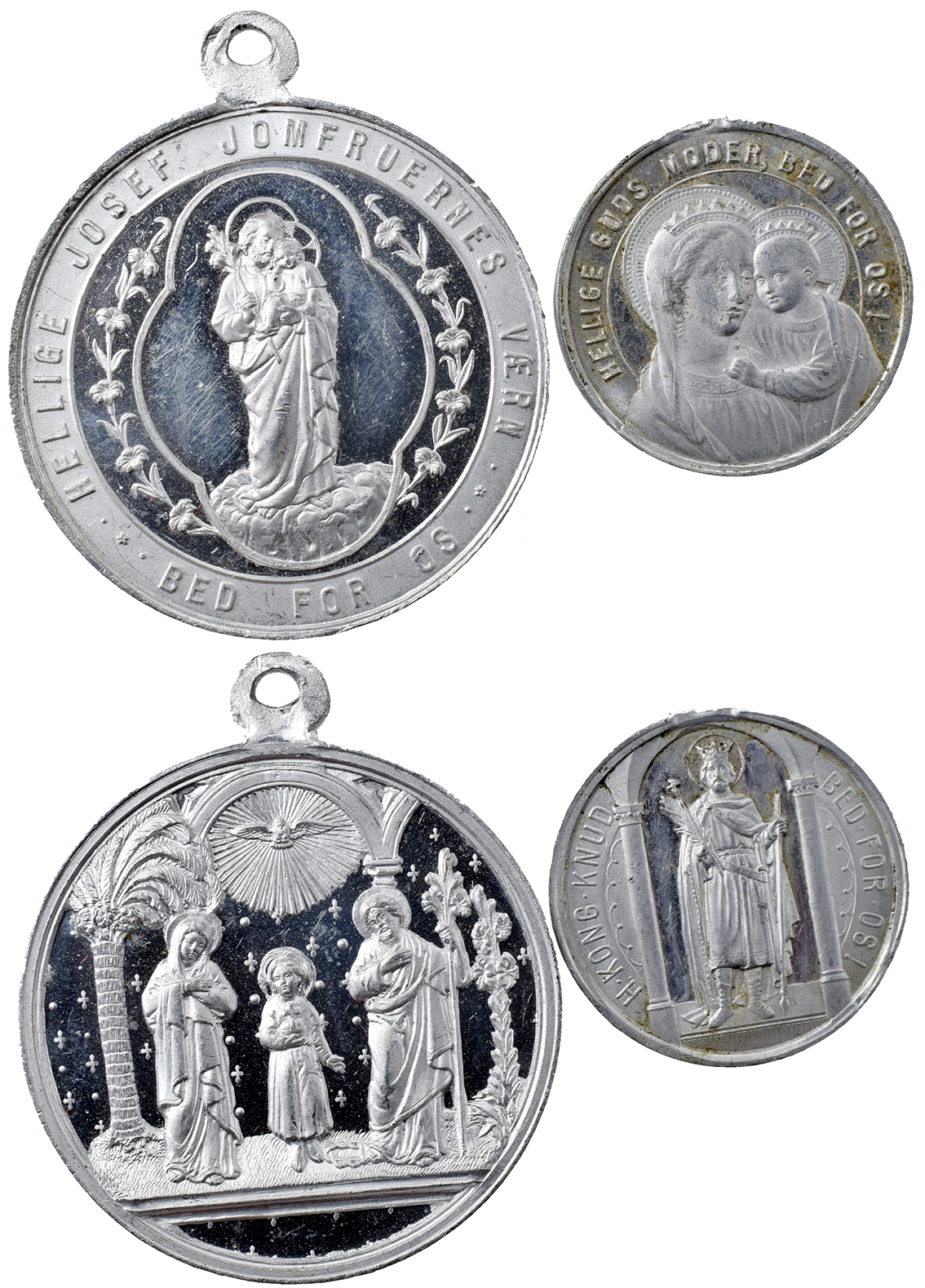 Danmark + ?, Hellige Josef, Kong Knud, Bed For Os u.år Al 22,33 mm 2 stk øsken fjernet