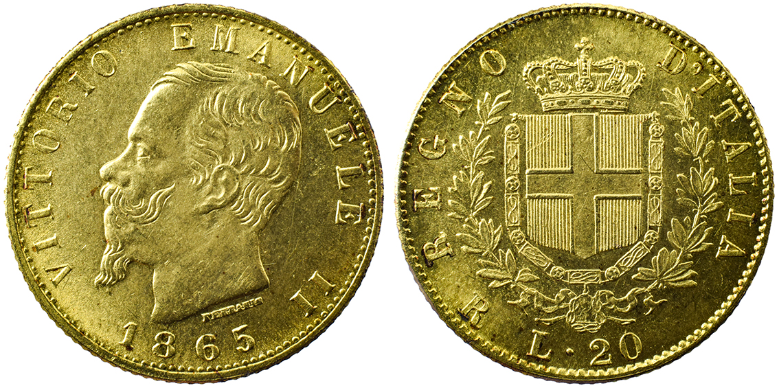 Italien, Vittorio Emmanuele II, 20 Lire 1865