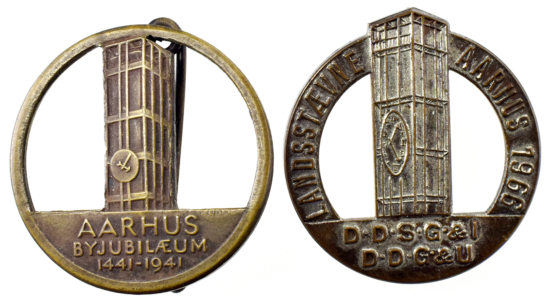 Danmark + ?, Århus jubilæum, Landsstævne, (1941 = Salomon) 1941, 1966 25 mm 2 stk.