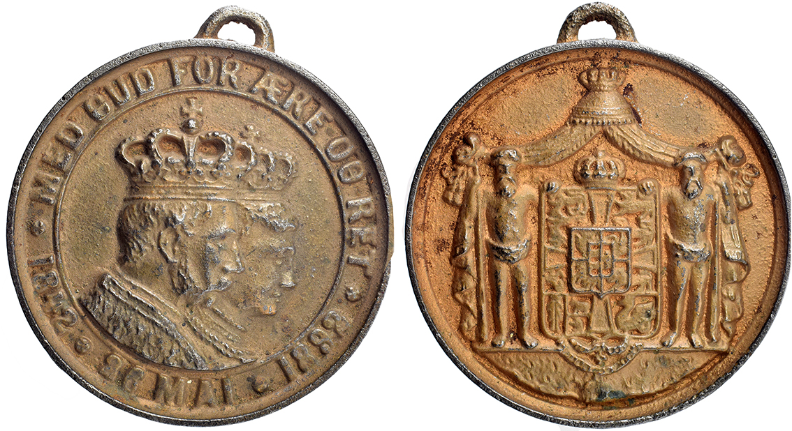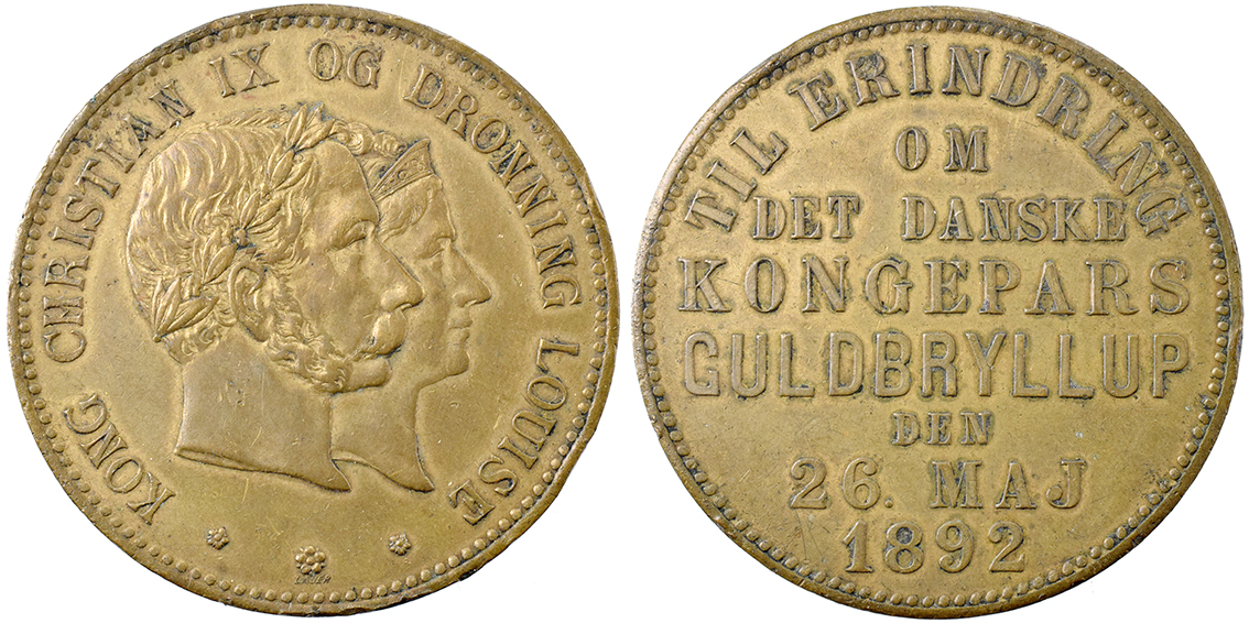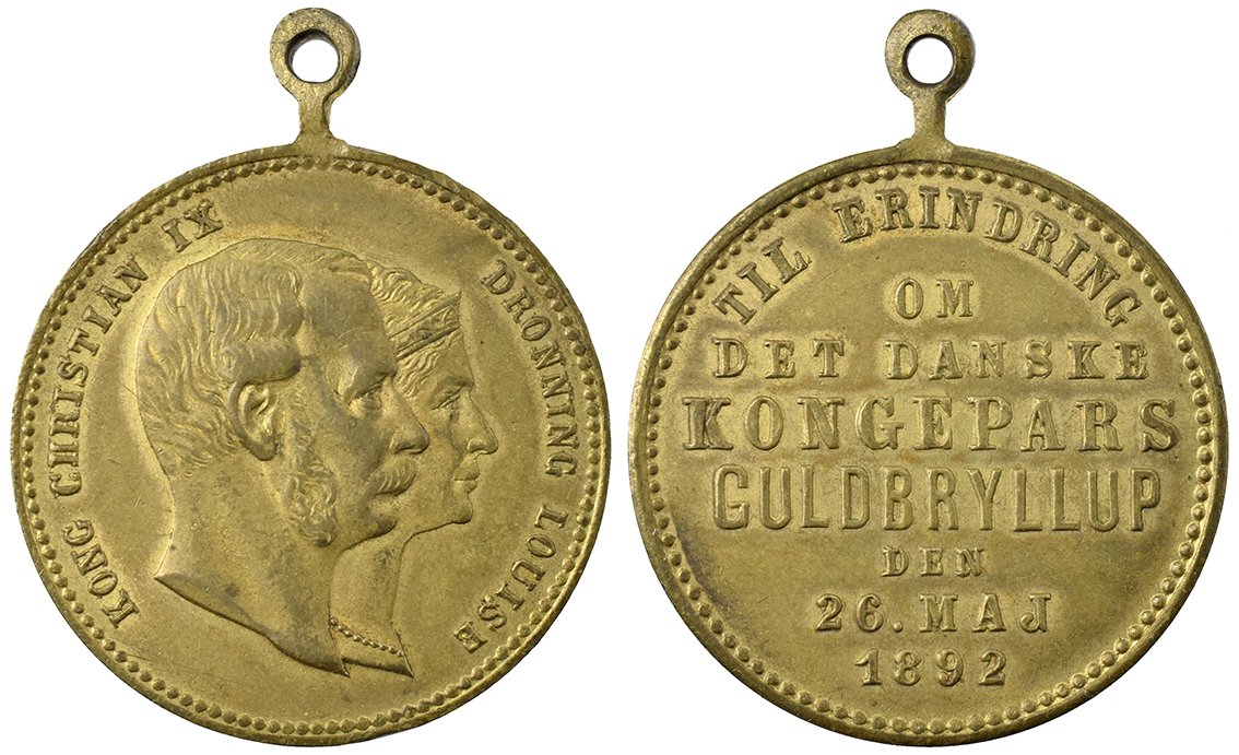 Danmark, Chr.9. & Louise, Guldbryllup 1892 messing sjælden