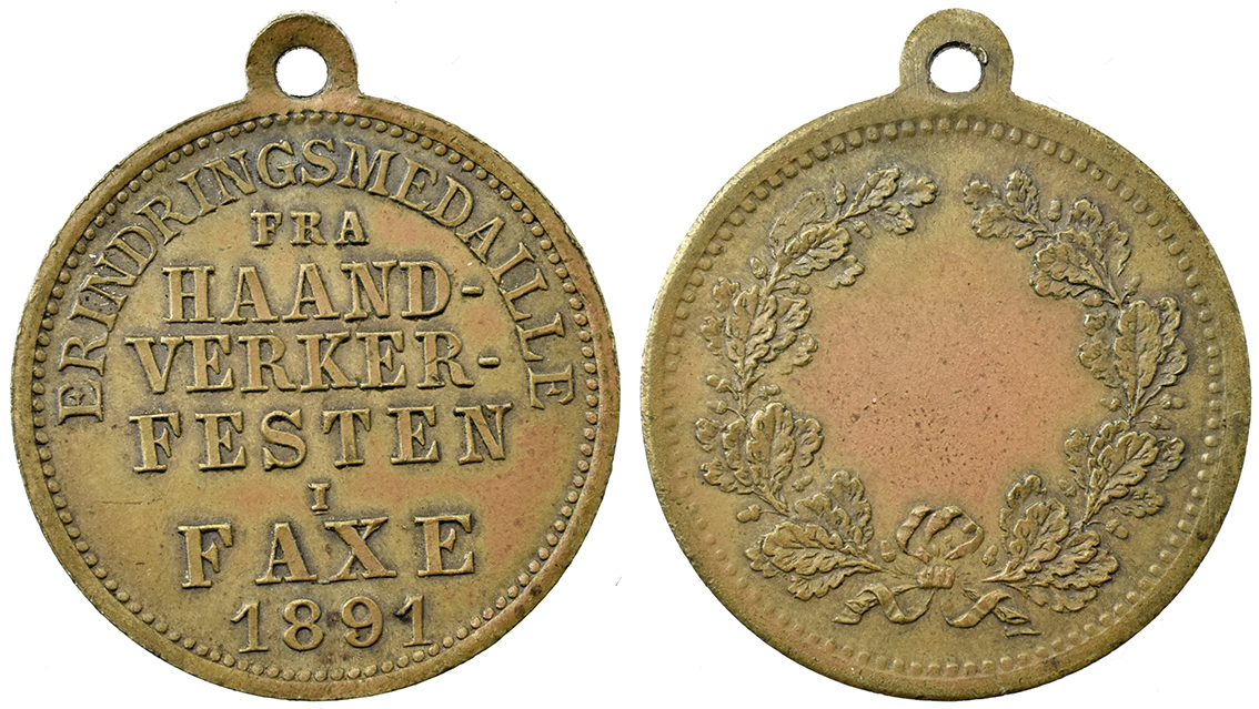 Danmark, Faxe, Haandverkerfesten 1891 messing
